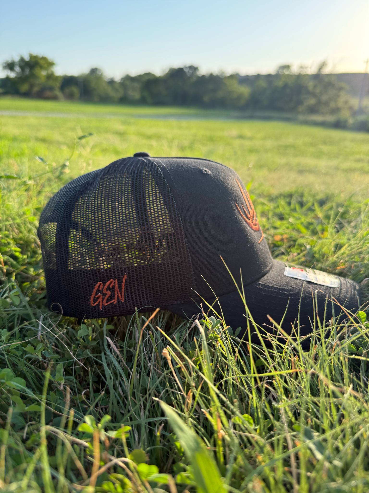 The Blaze is a head-turner—featuring our signature GEN logo in a bold burnt orange stitch on a classic black Richardson 112. Built for early mornings, late nights, and everything in between.